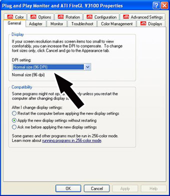 יש לשנות את הגדרות הDPI ל -  96DPI